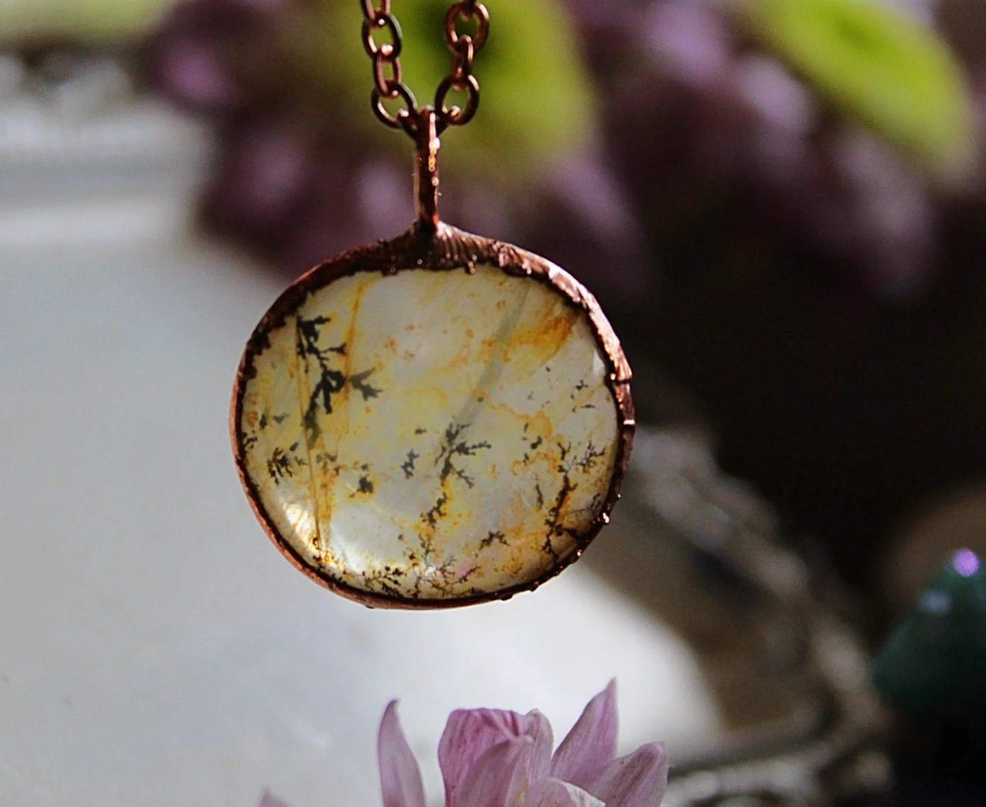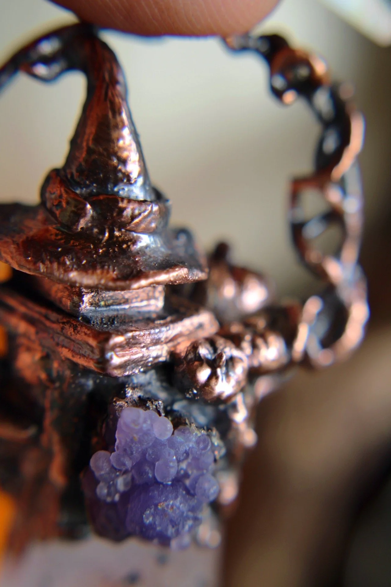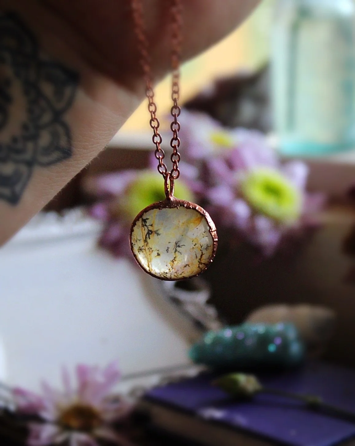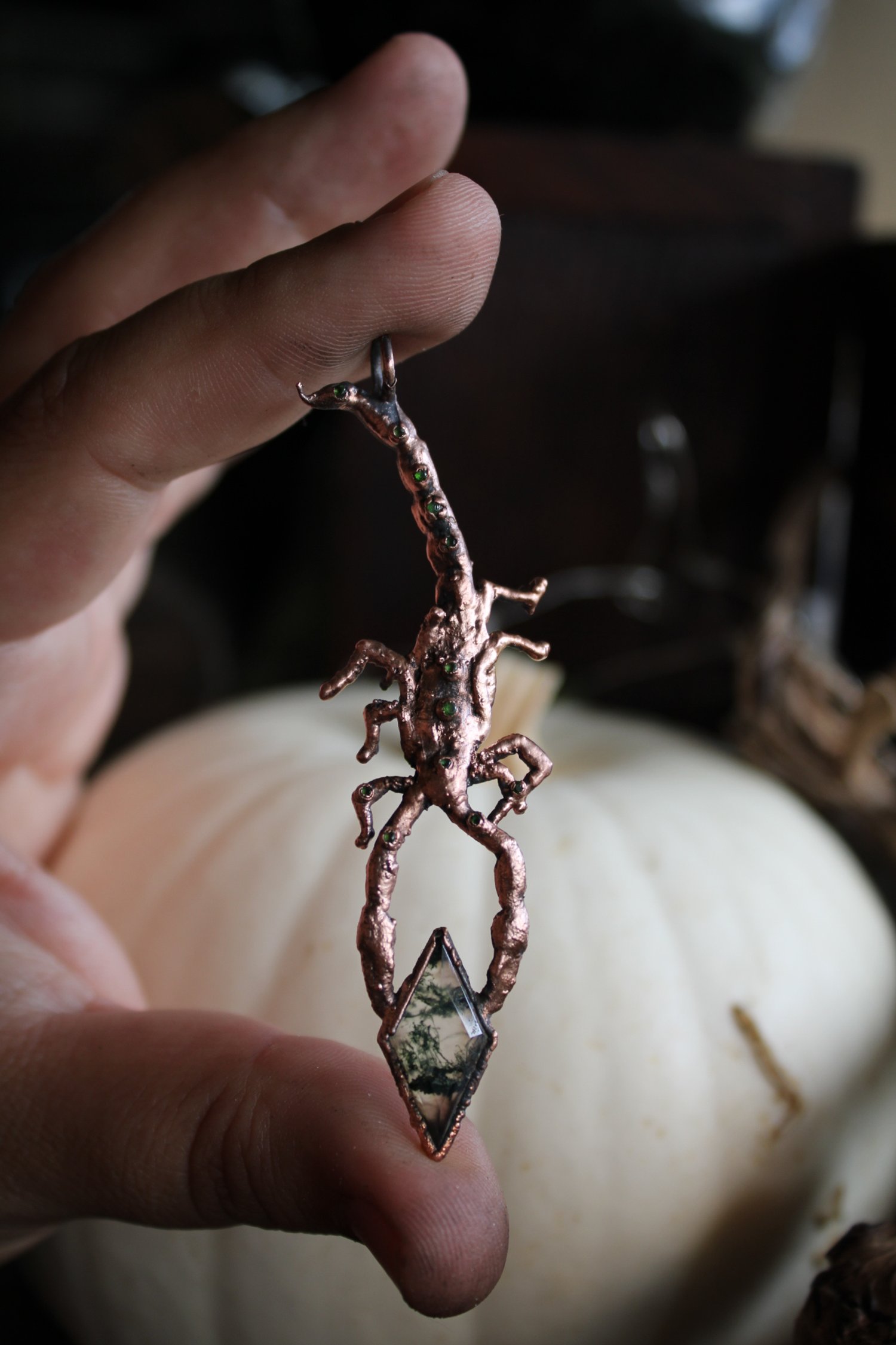 Witches broom necklace made with labradorite, moonstone and pink tourmaline