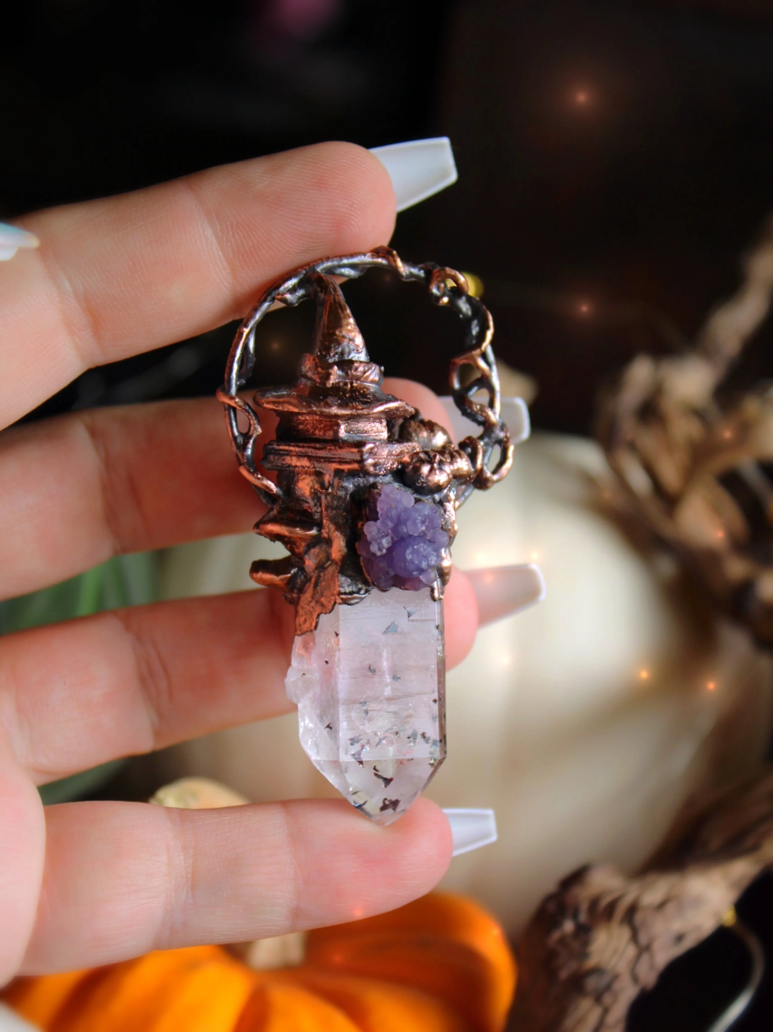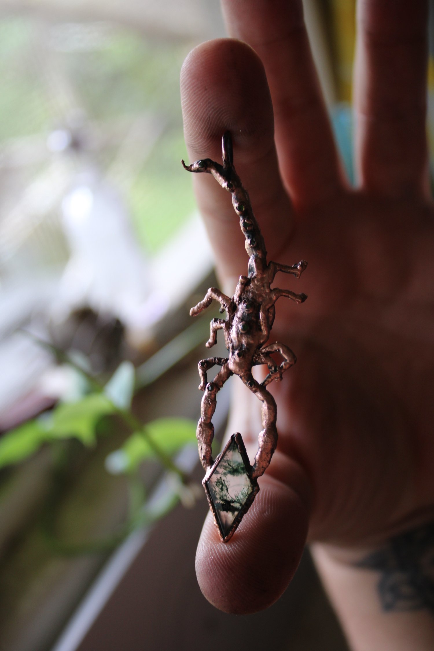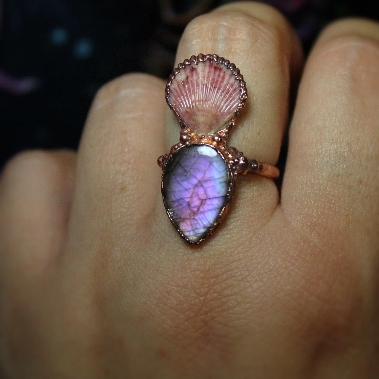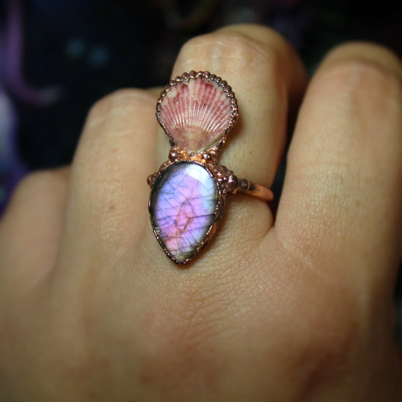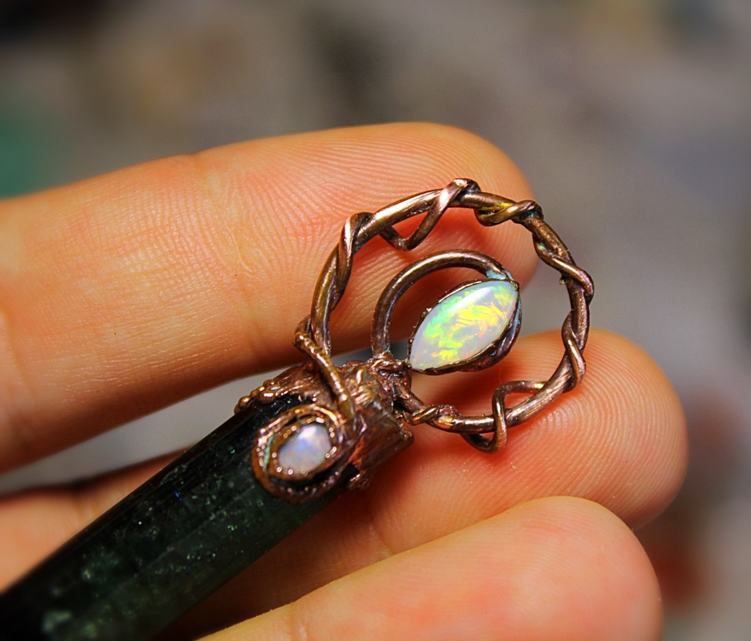 Witches broom necklace made with labradorite, moonstone and pink tourmaline