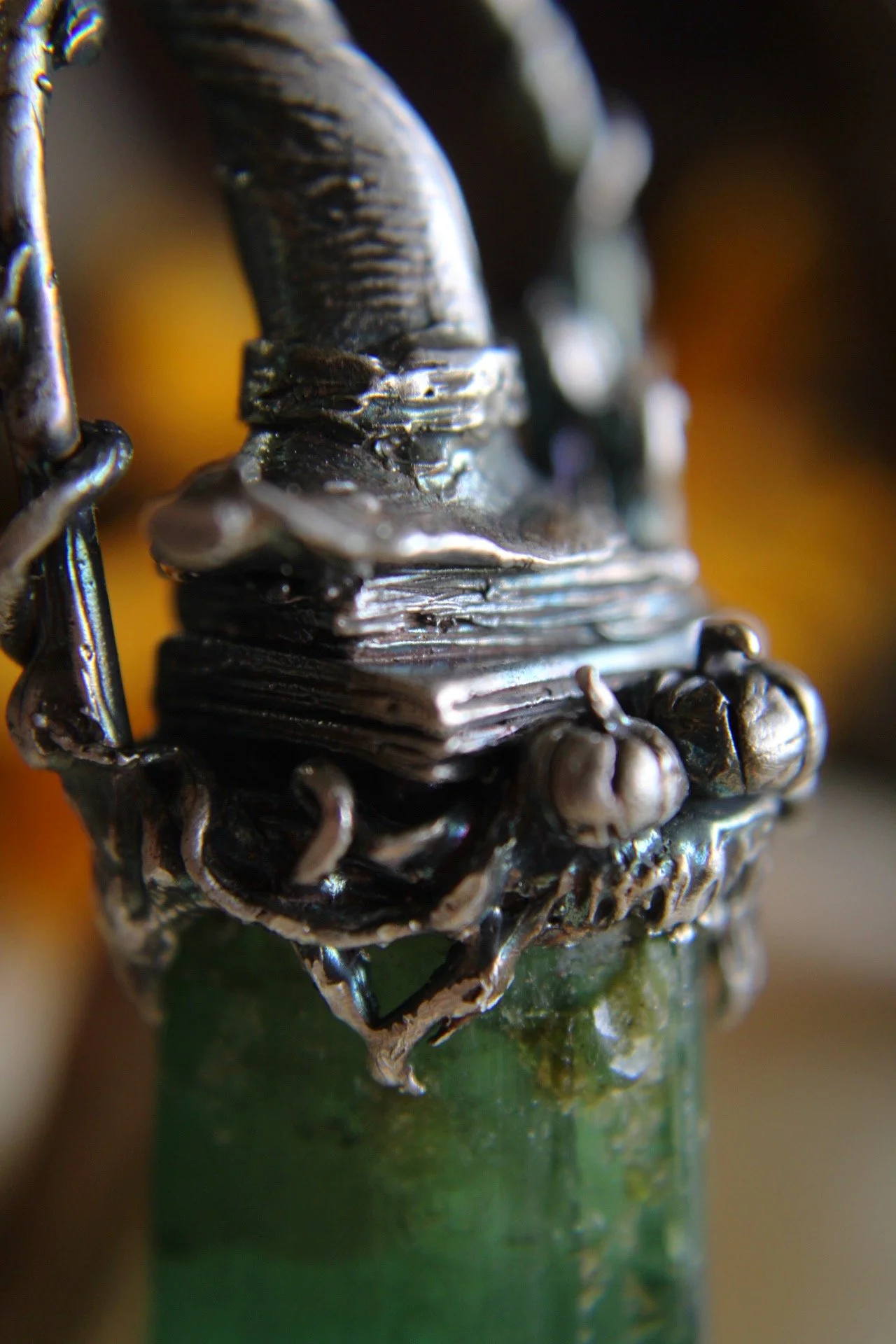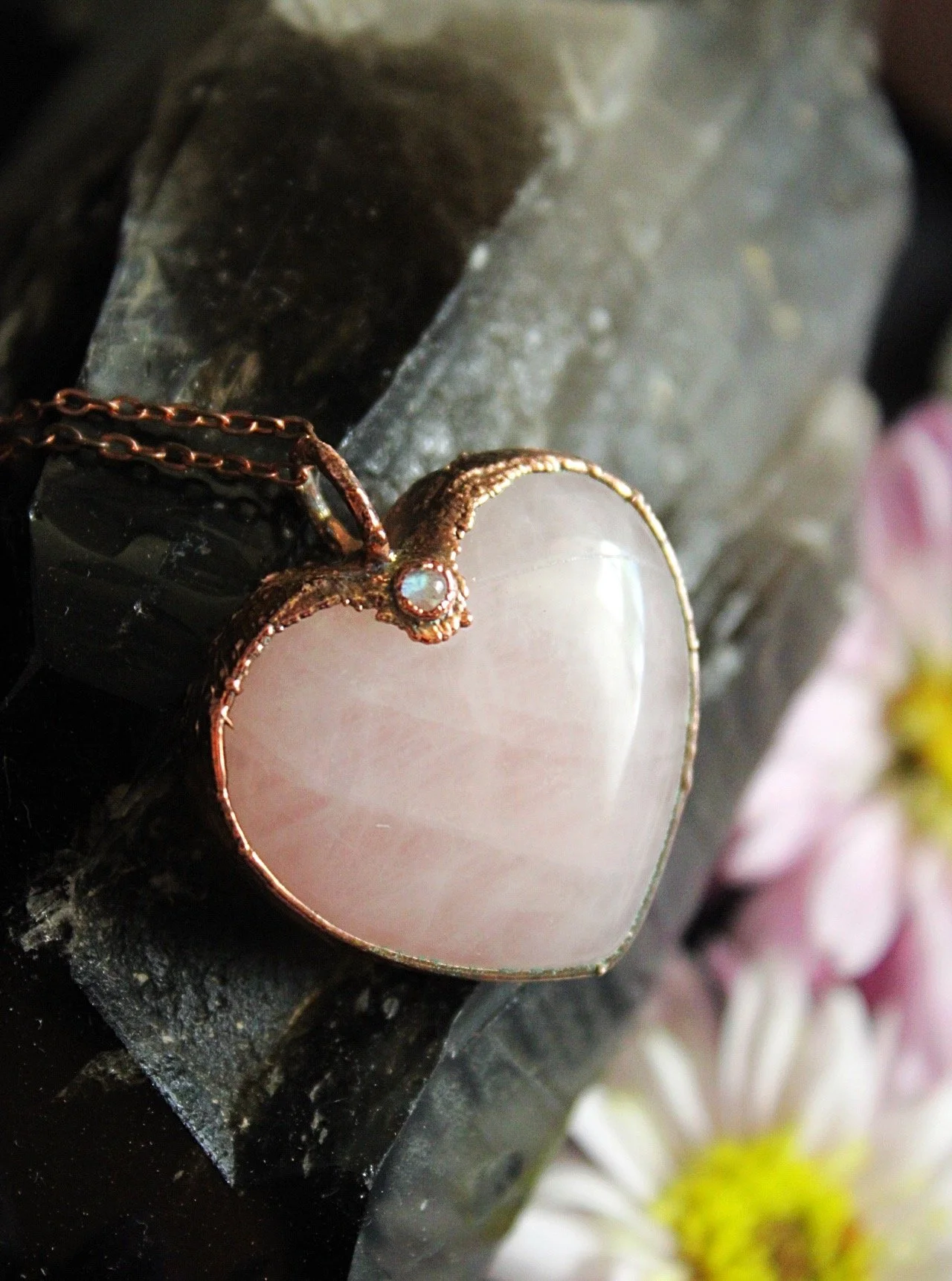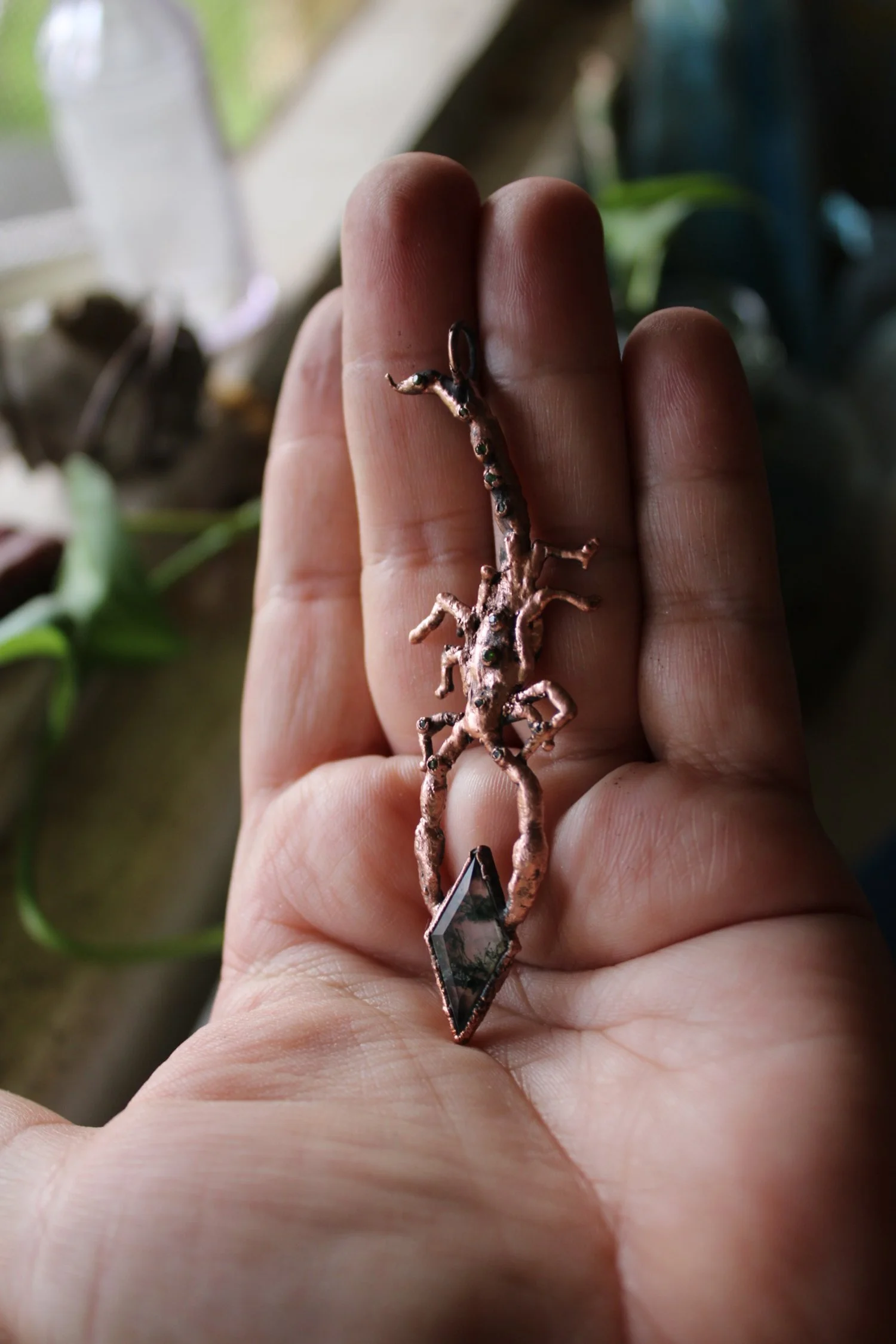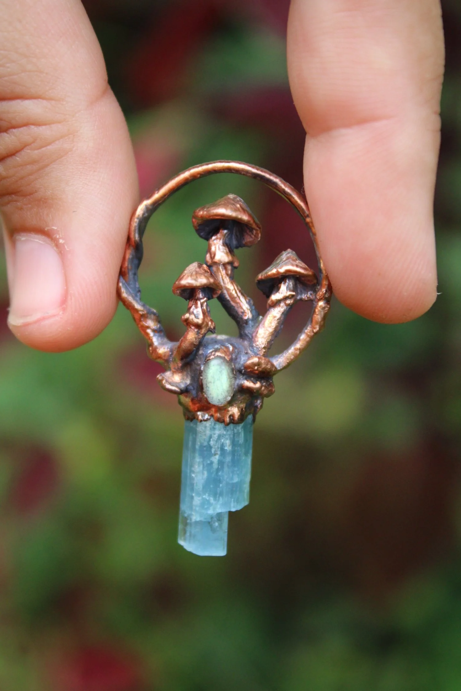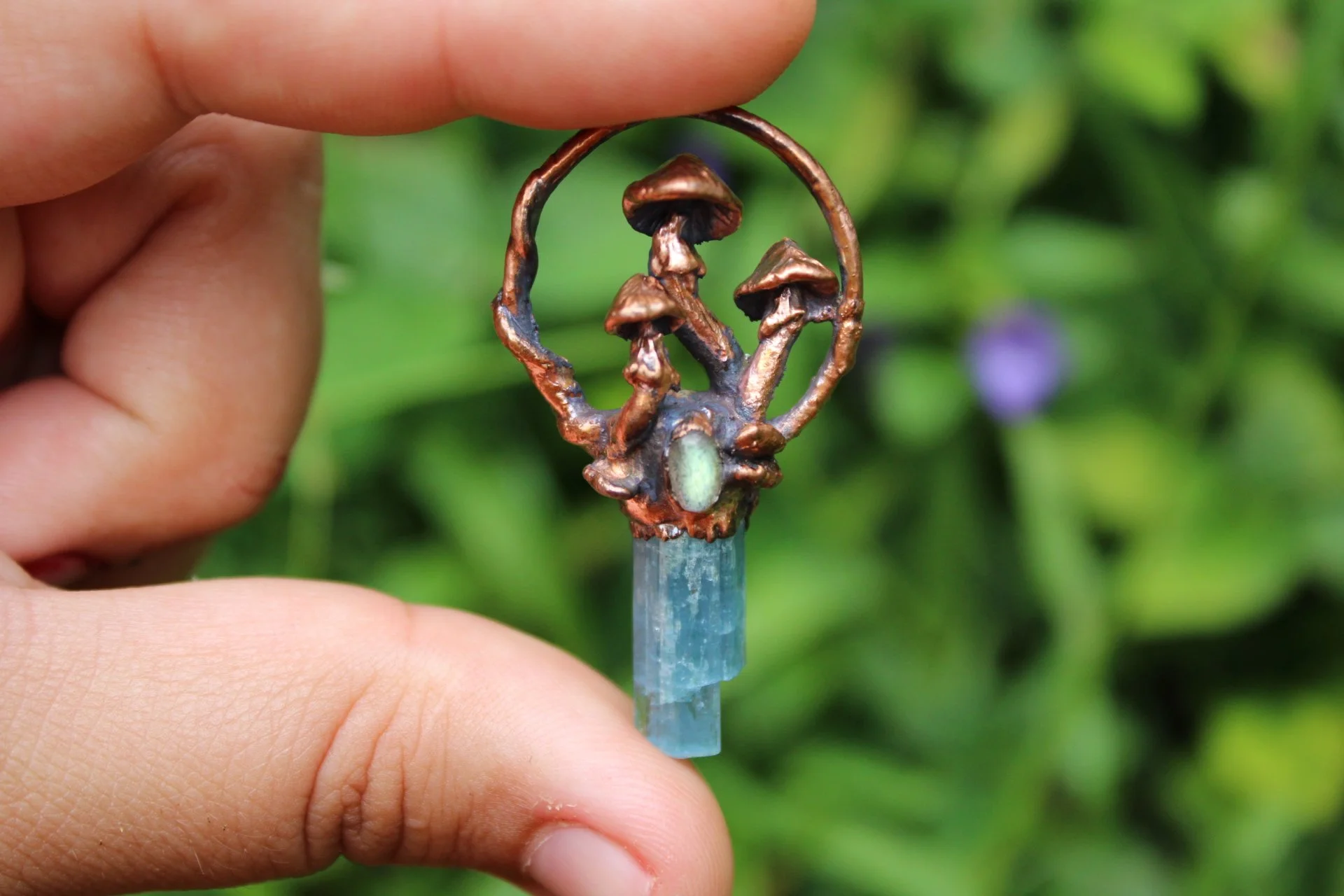 Witches broom necklace made with labradorite, moonstone and pink tourmaline