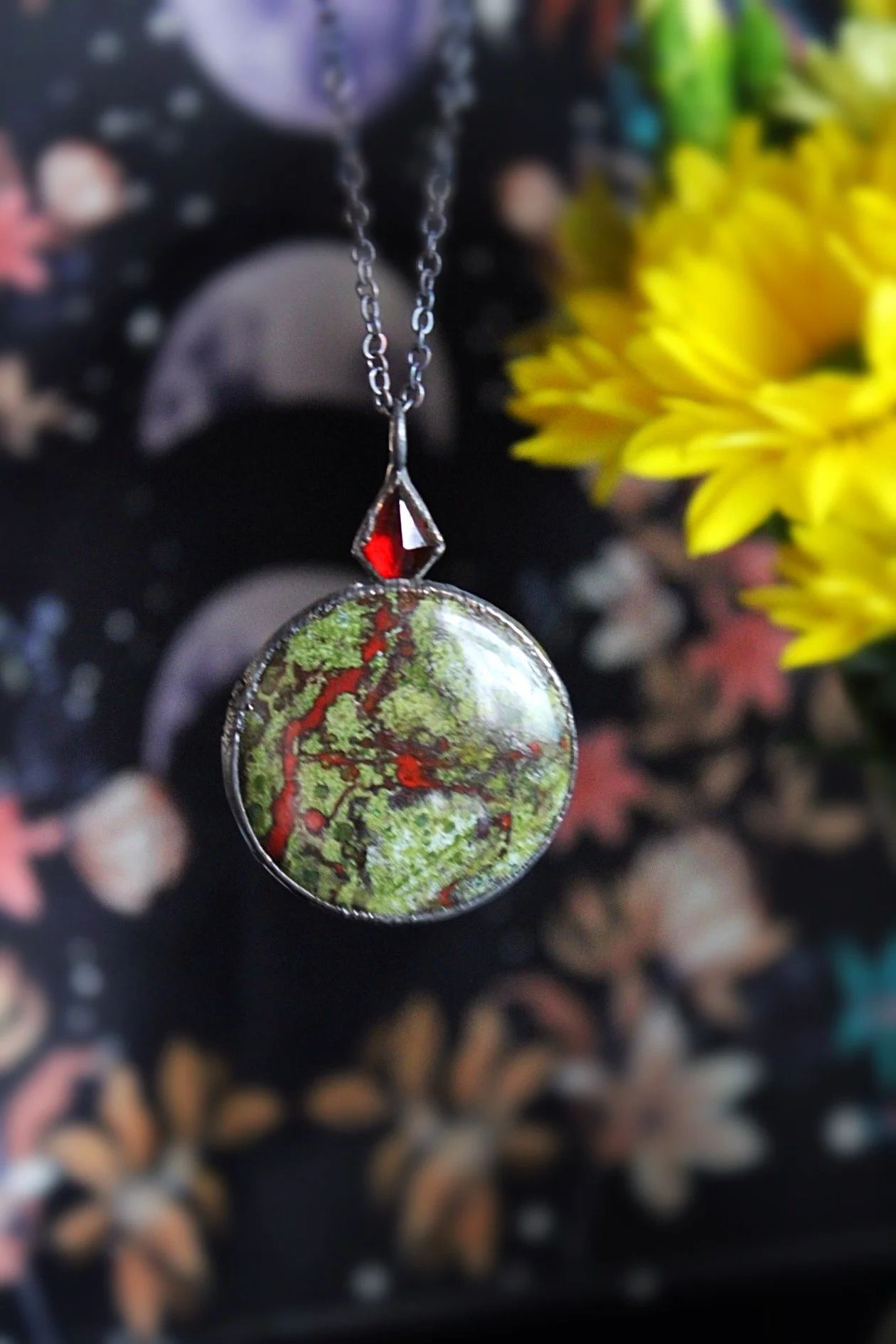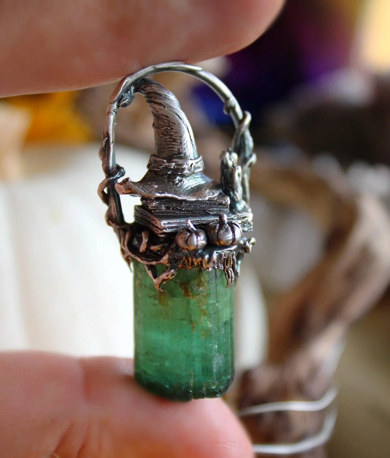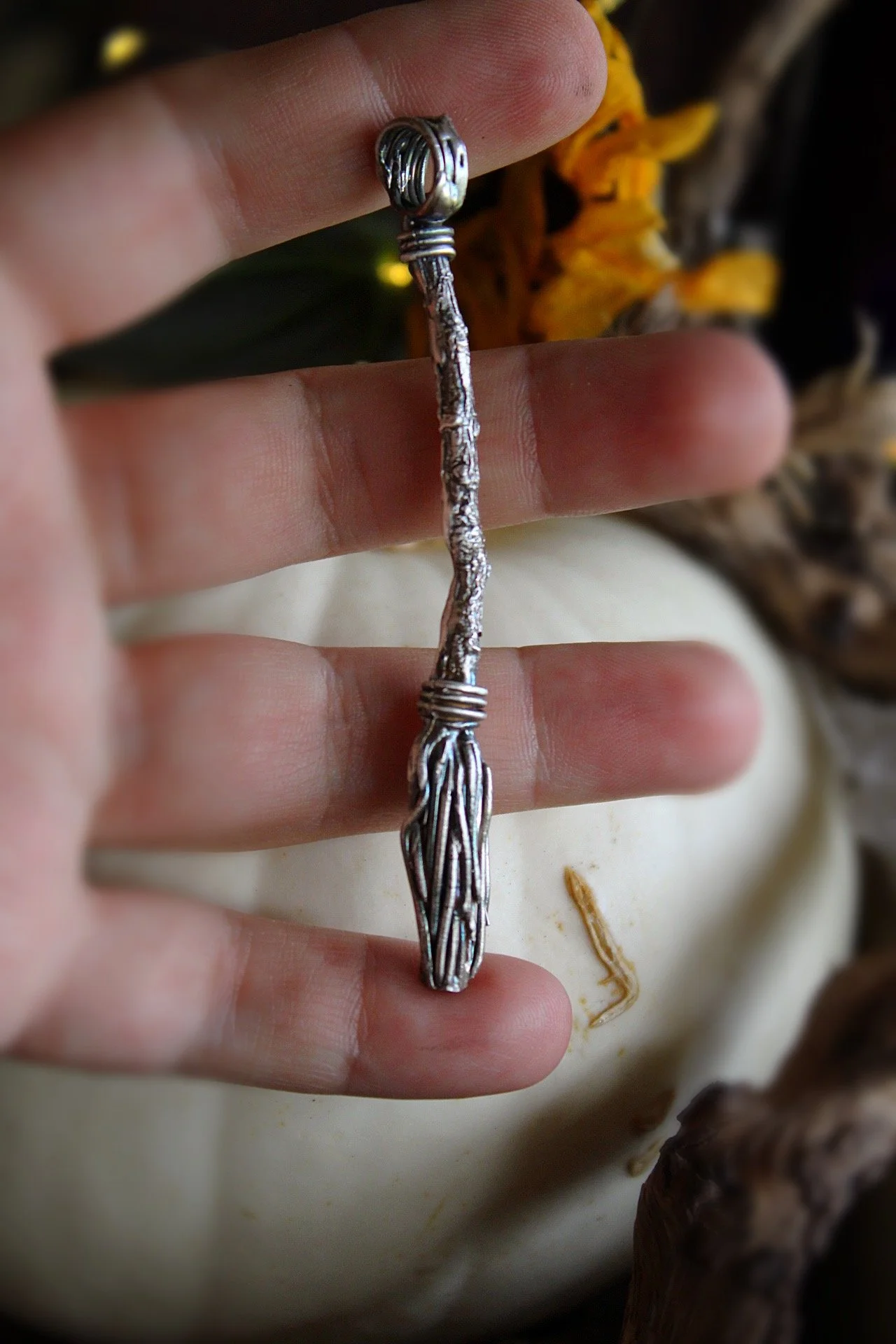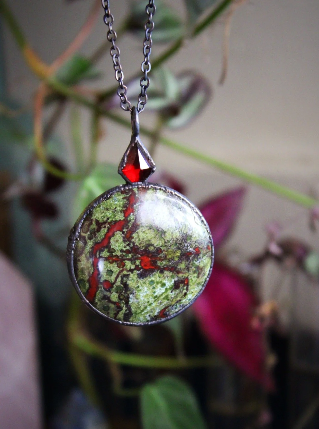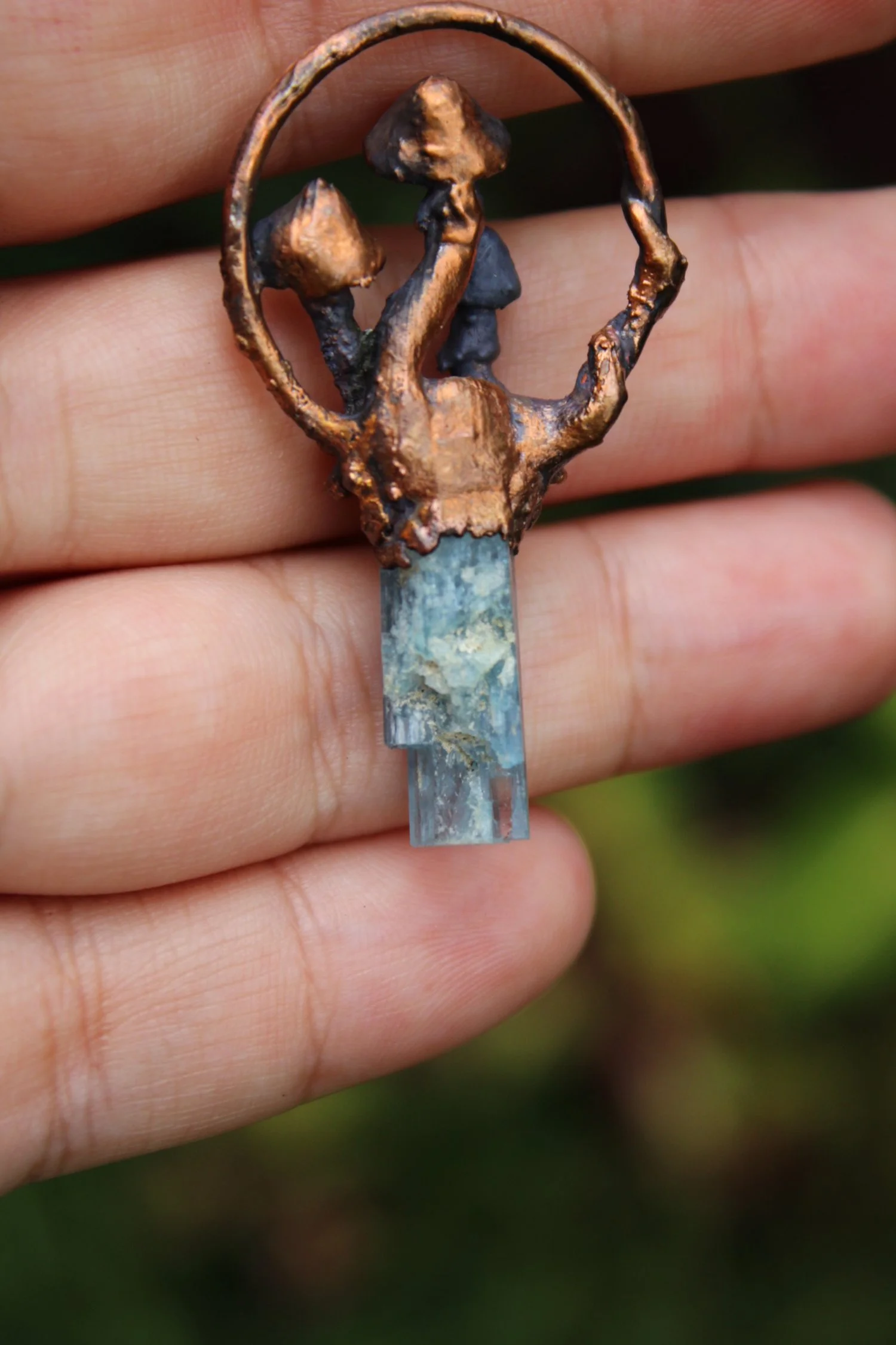 Witches broom necklace made with labradorite, moonstone and pink tourmaline