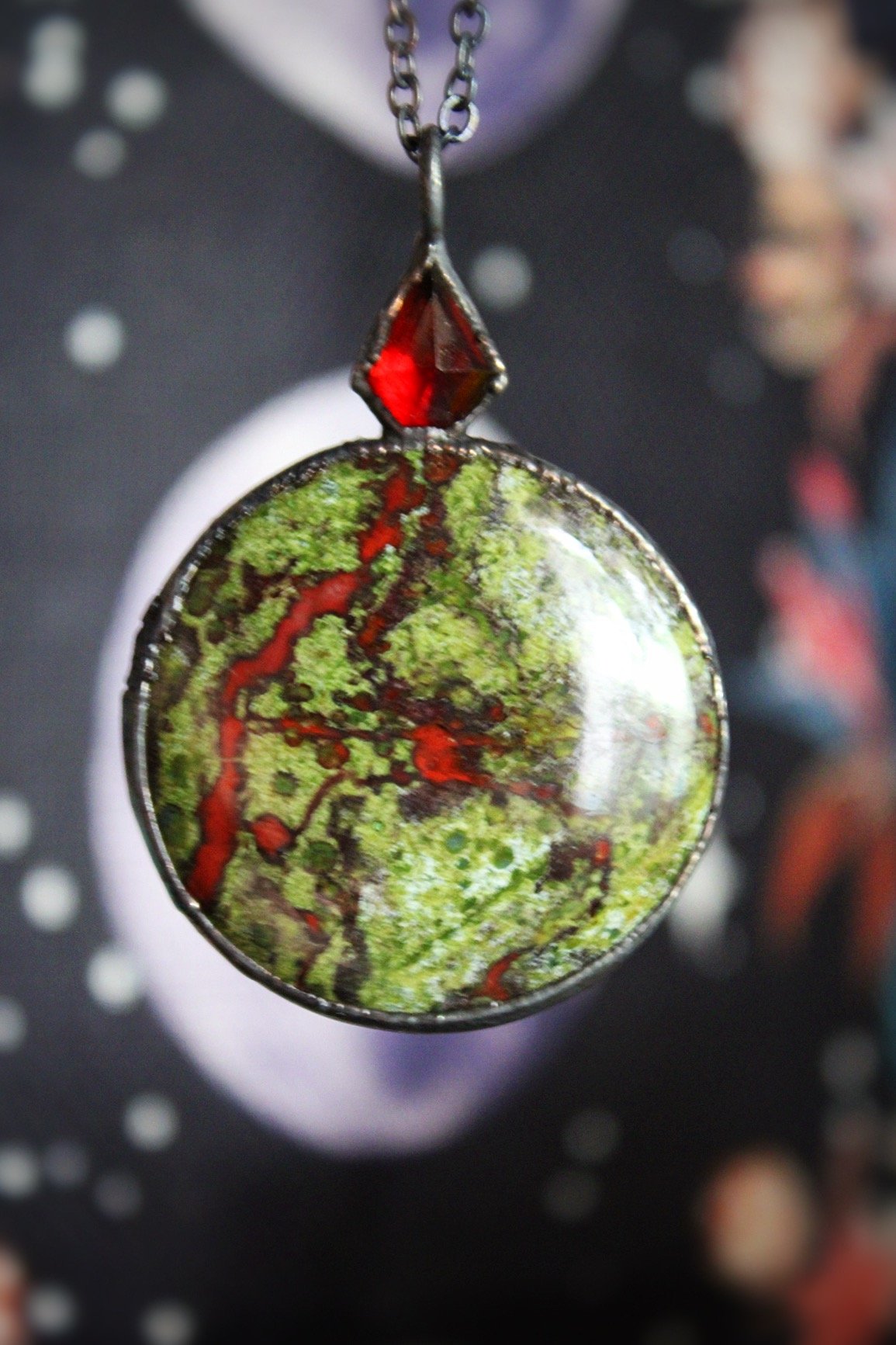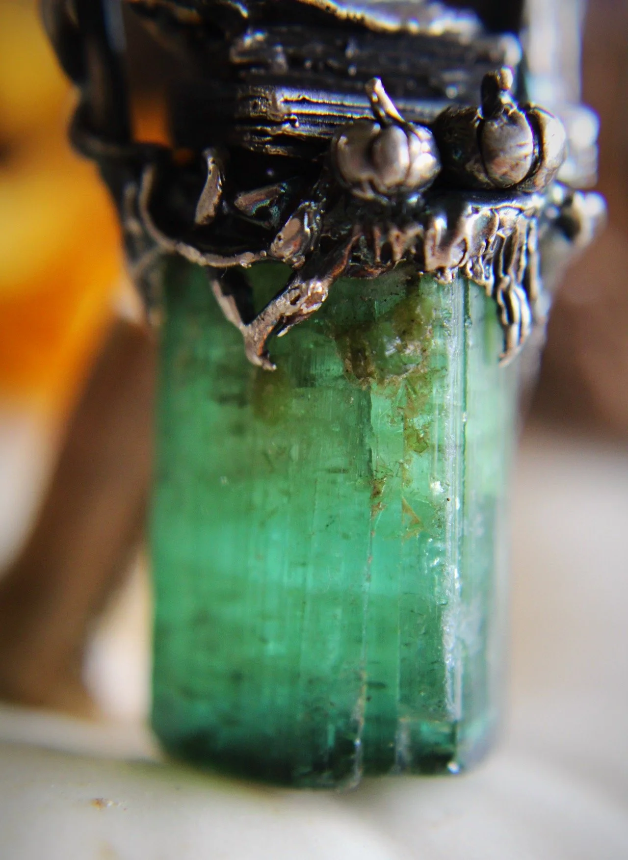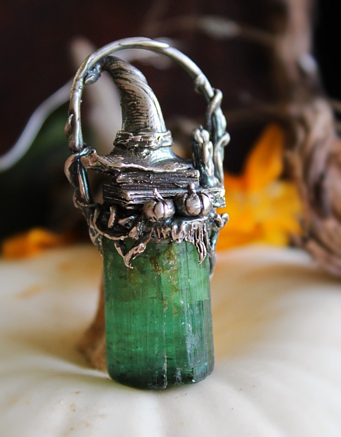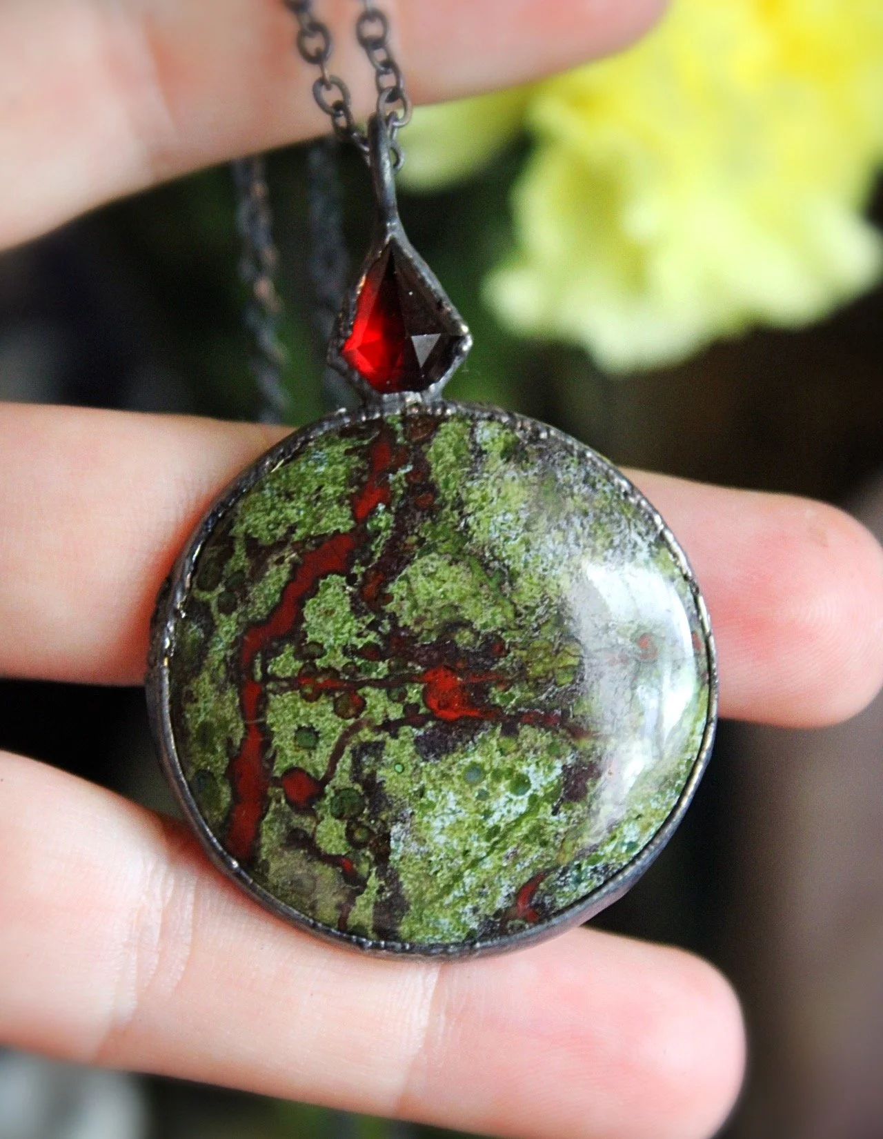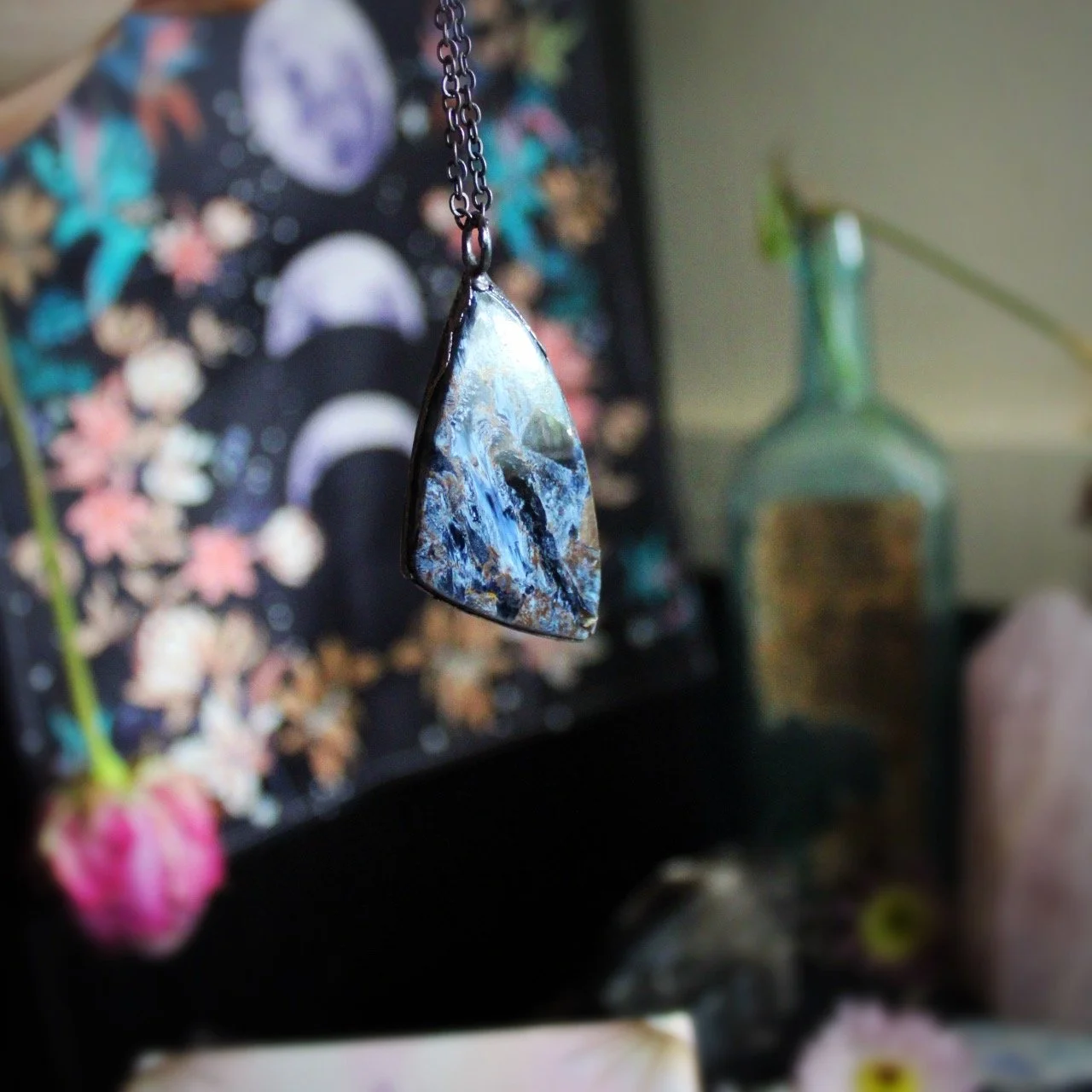 Witches broom necklace made with labradorite, moonstone and pink tourmaline