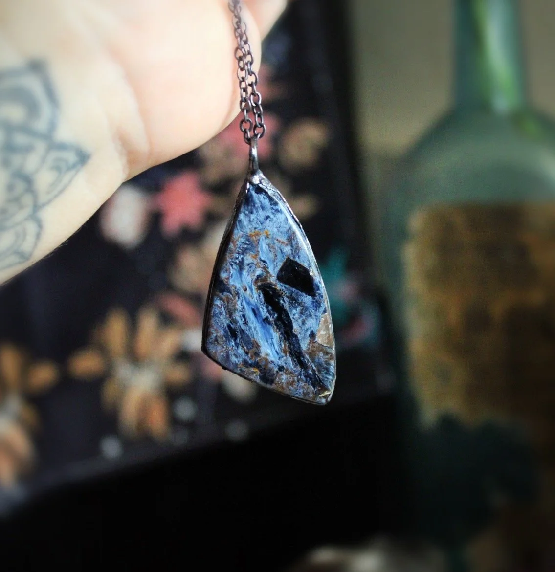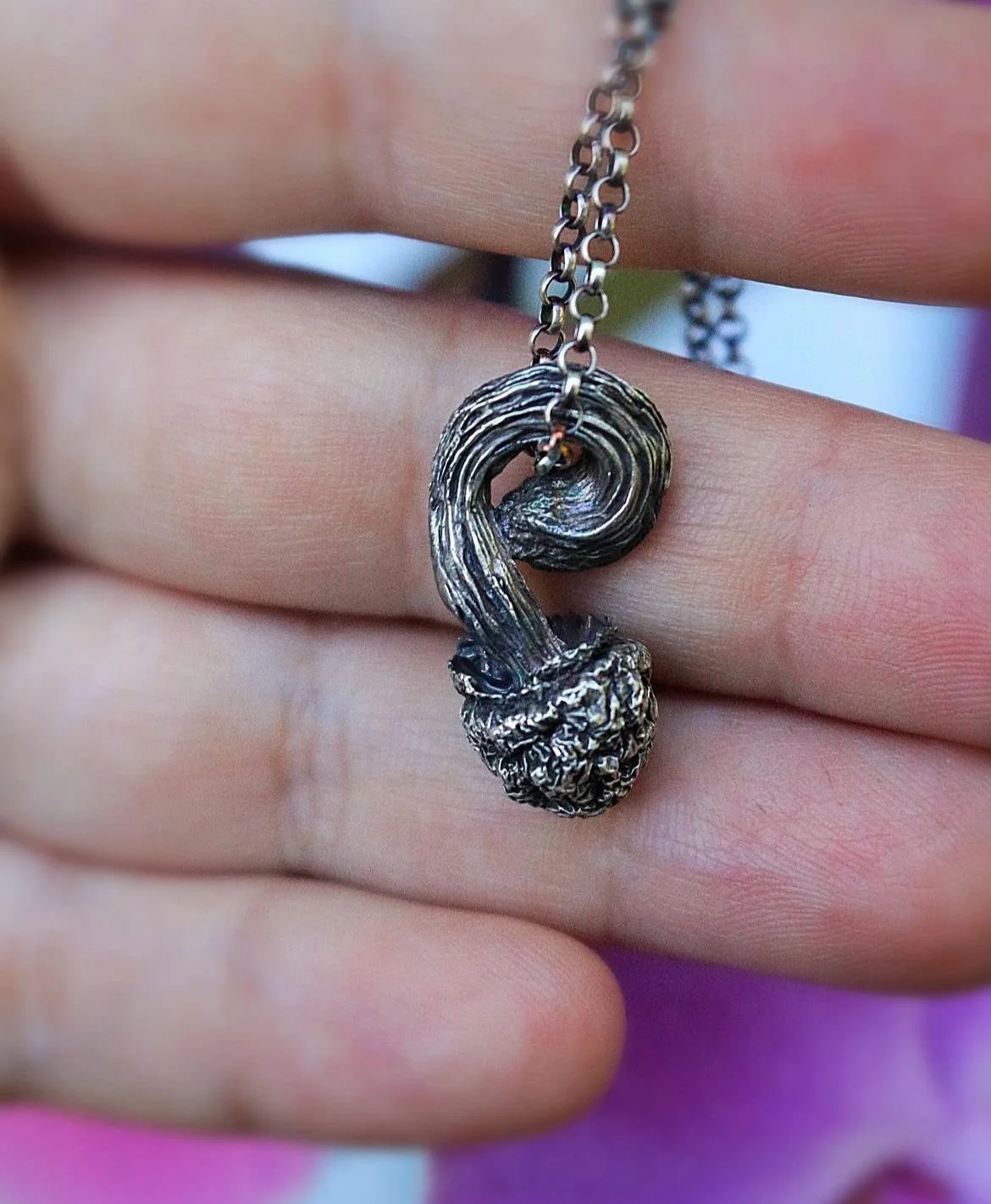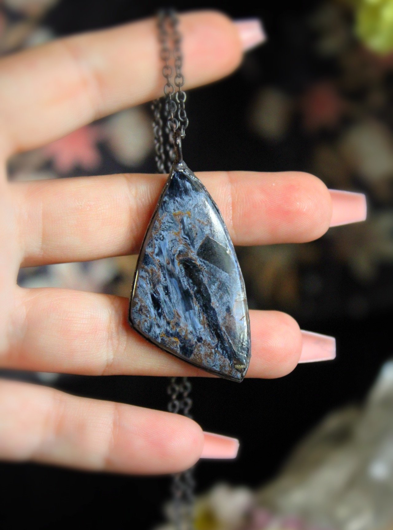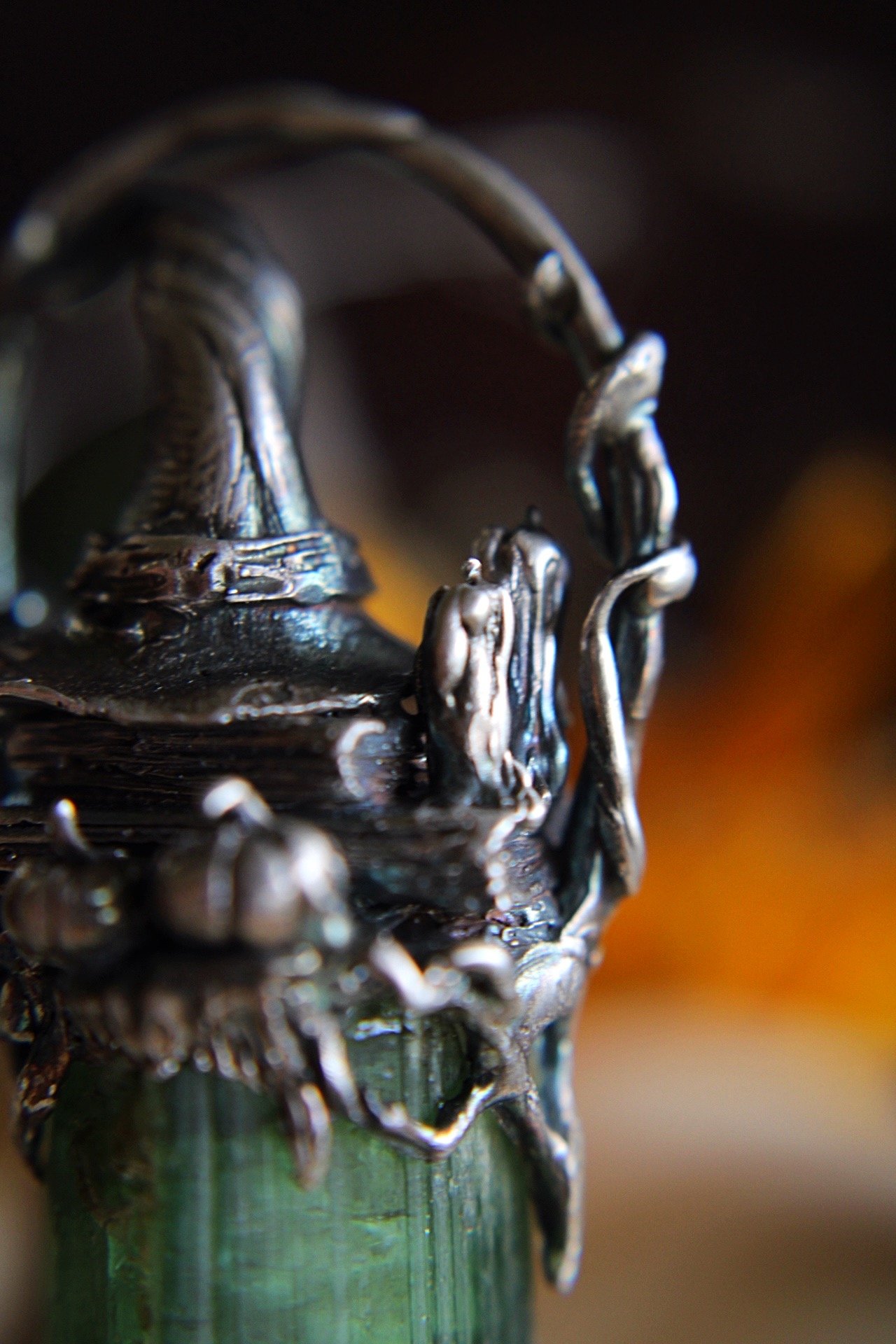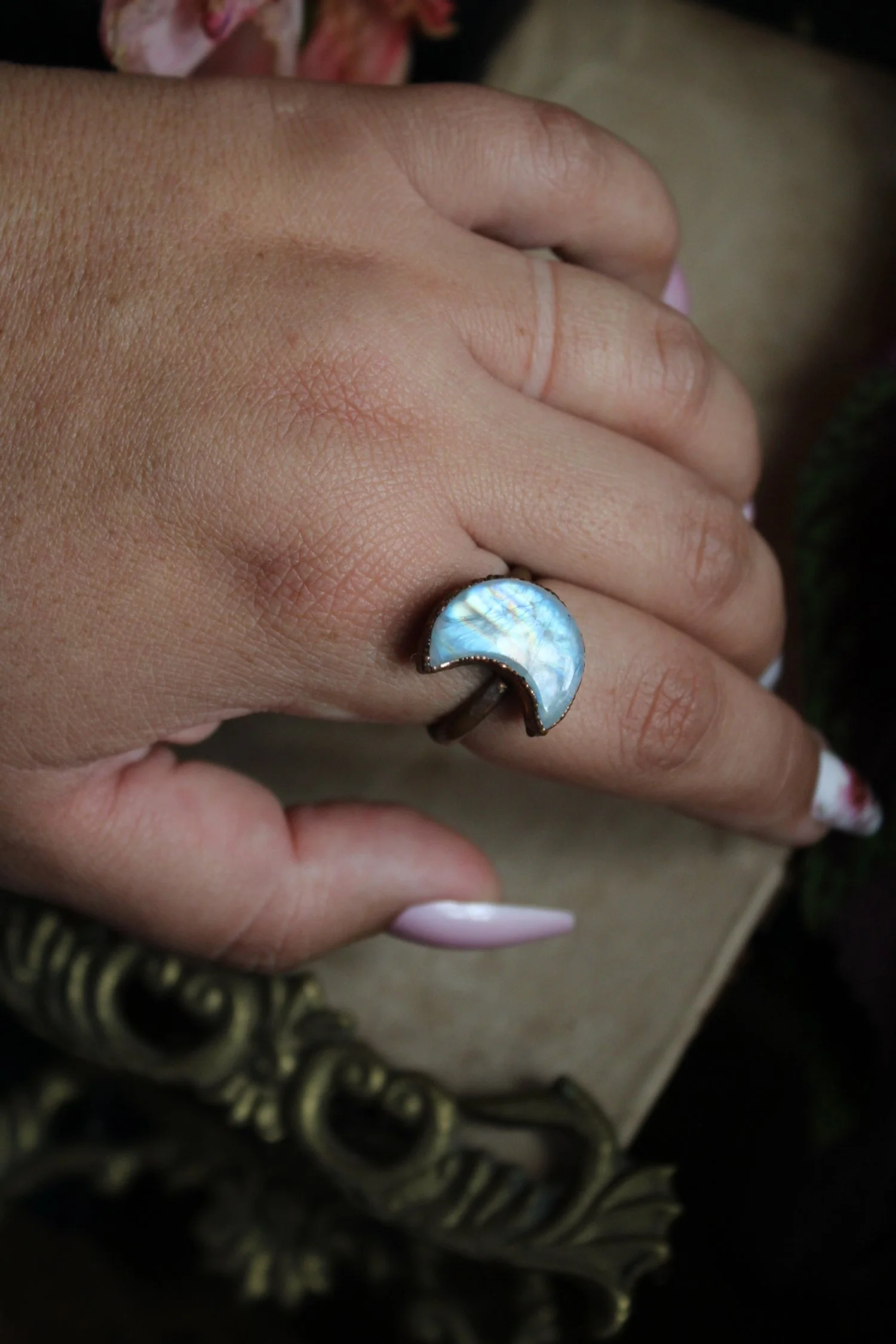 Witches broom necklace made with labradorite, moonstone and pink tourmaline