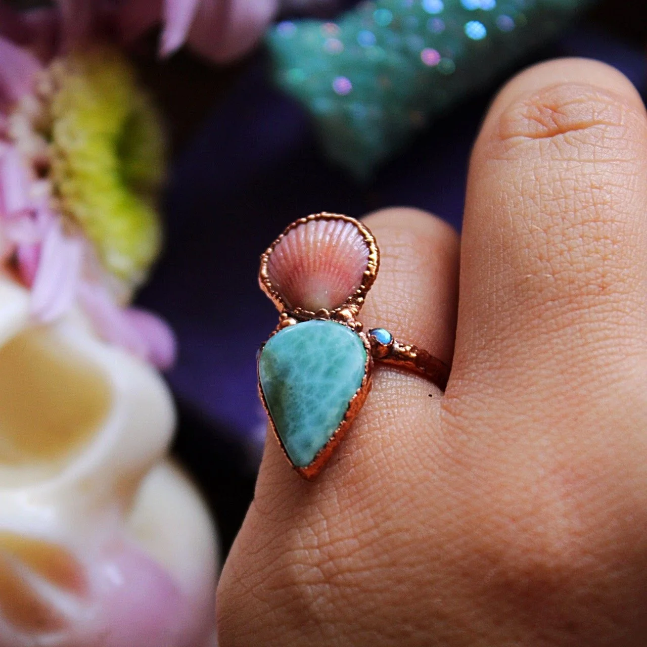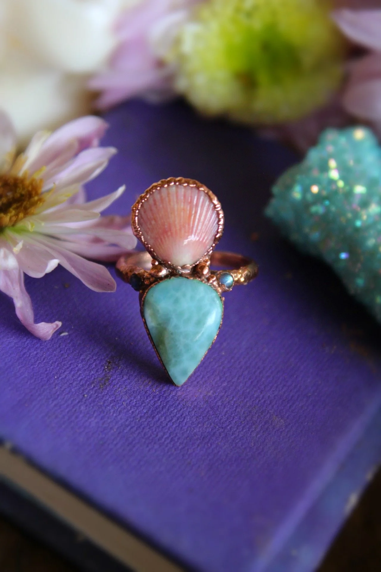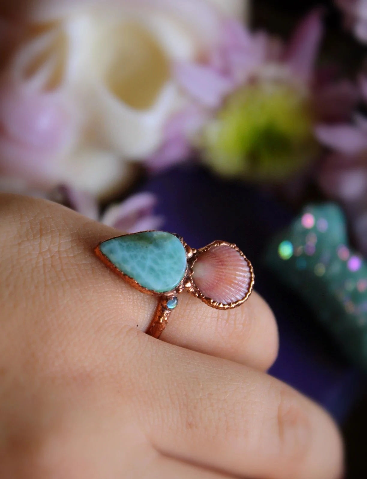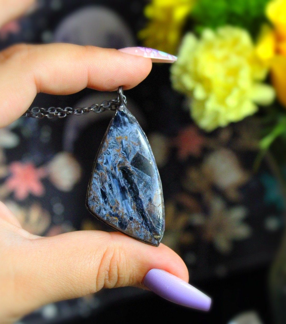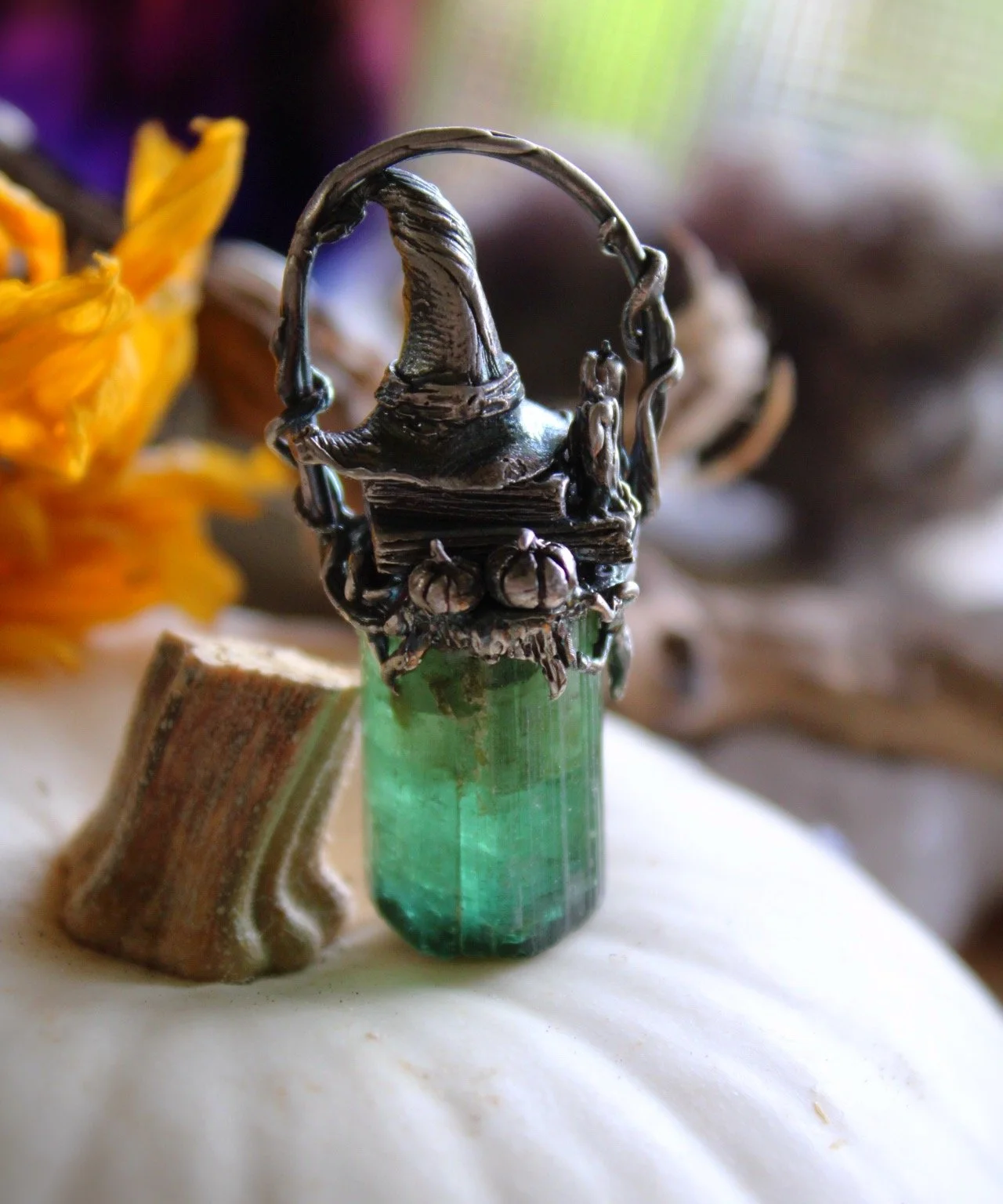 Witches broom necklace made with labradorite, moonstone and pink tourmaline